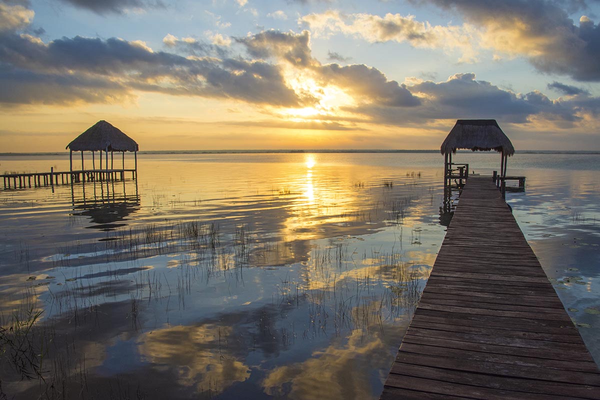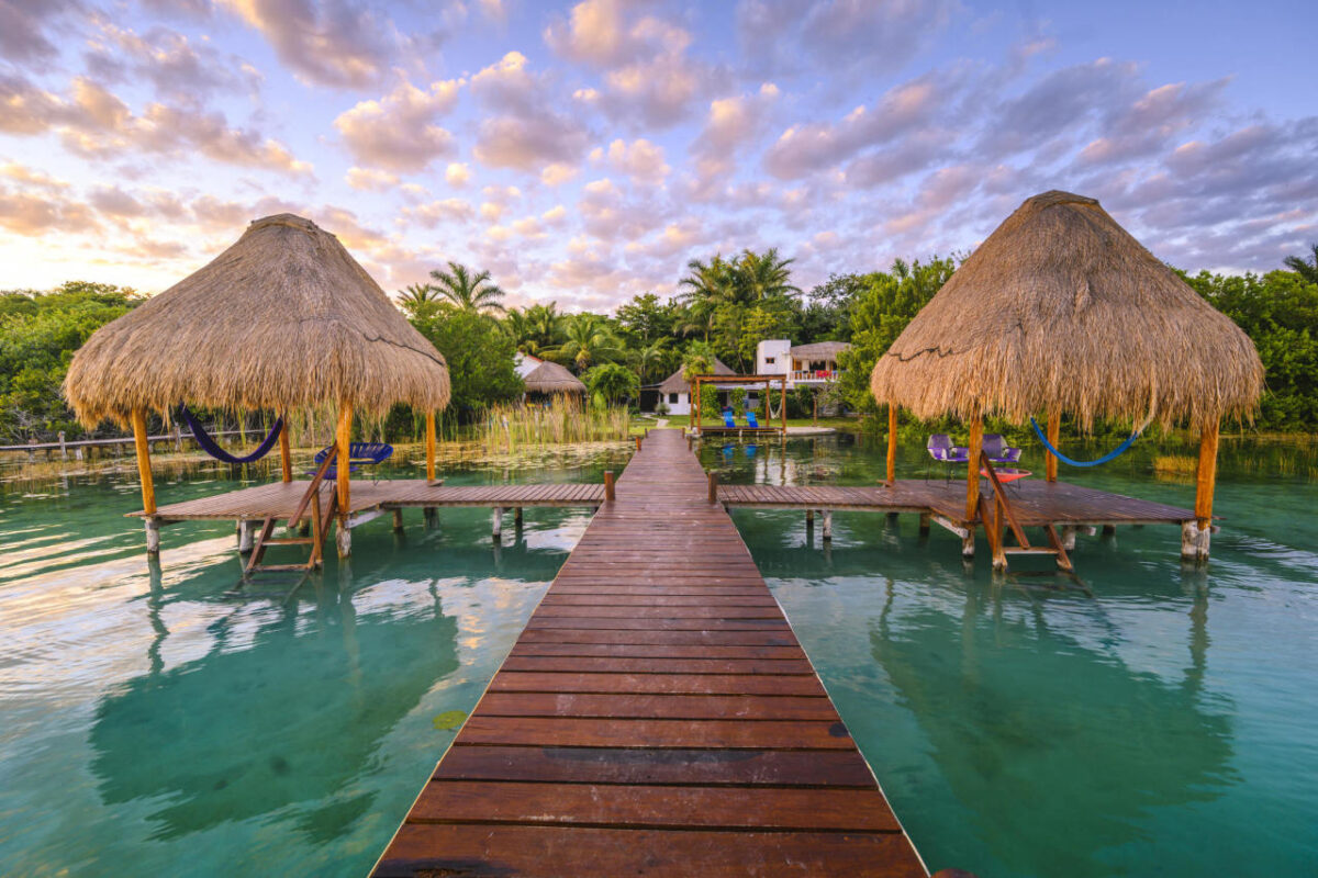 La ciudad de Bacalar, cerca de la frontera entre México y Belice, es un verdadero paraíso a la espera de viajeros. El pueblo se asienta en la Laguna de los Siete Colores, un lago apodado por su agua de colores hermosos, lo que lo convierte en el lugar perfecto para atardeceres impresionantes, marisco fresco y baños en un cenote.